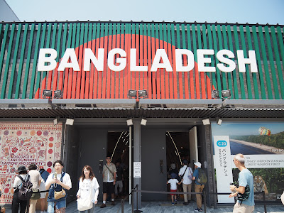 貪心的自己想看最多的館,於是那些貨櫃組裝型場館兼沒啥人排隊的成自己首要目標:首先孟加拉館,其較大篇幅講獨立戰爭和紡織業,順帶講一下可持續發展和與日本合作云云。