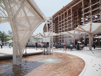 五點再上大屋根頂遊走,看著美國館外無窮無盡的人龍,《20世紀少年》裡的「朋友」也嚷第一日就直衝美國館,世人常罵美國霸權像技安,耐何她卻魅力沒法擋,只覺自己有生之年也會親臨就無謂迫埋一份。原想在這圓環走一下就作結,但見雲層始有點稀疏,預計可再看一回日落。唯見仍是六點距太陽降下還有一小時,還是下去看仲有甚麼。